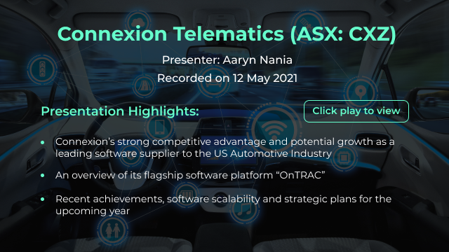 Connexion Telematics (ASX: CXZ) is an Internet of Things (IoT) technology company revolutionising smart car technology for the automotive industry. The Company has secured commercial agreements with leading automotive industry players to roll out its proprietary smart car technologies in the coming years. Connexion is the developer and owner of its flagship Software as a Service (SaaS) product, OnTRAC, which delivers cutting edge technology to the automotive industry.